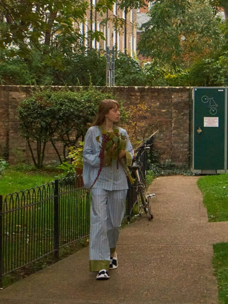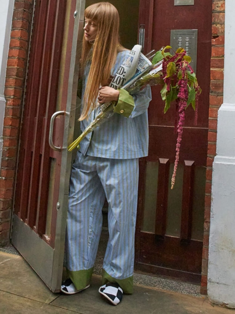 The pants are designed with a loose and comfortable fit, allowing for freedom of movement. The elastic waistband provides a personalized fit, and the relaxed cut offers a stylish, effortless look. The wide-leg design completes the set with an easy-going, flattering silhouette.