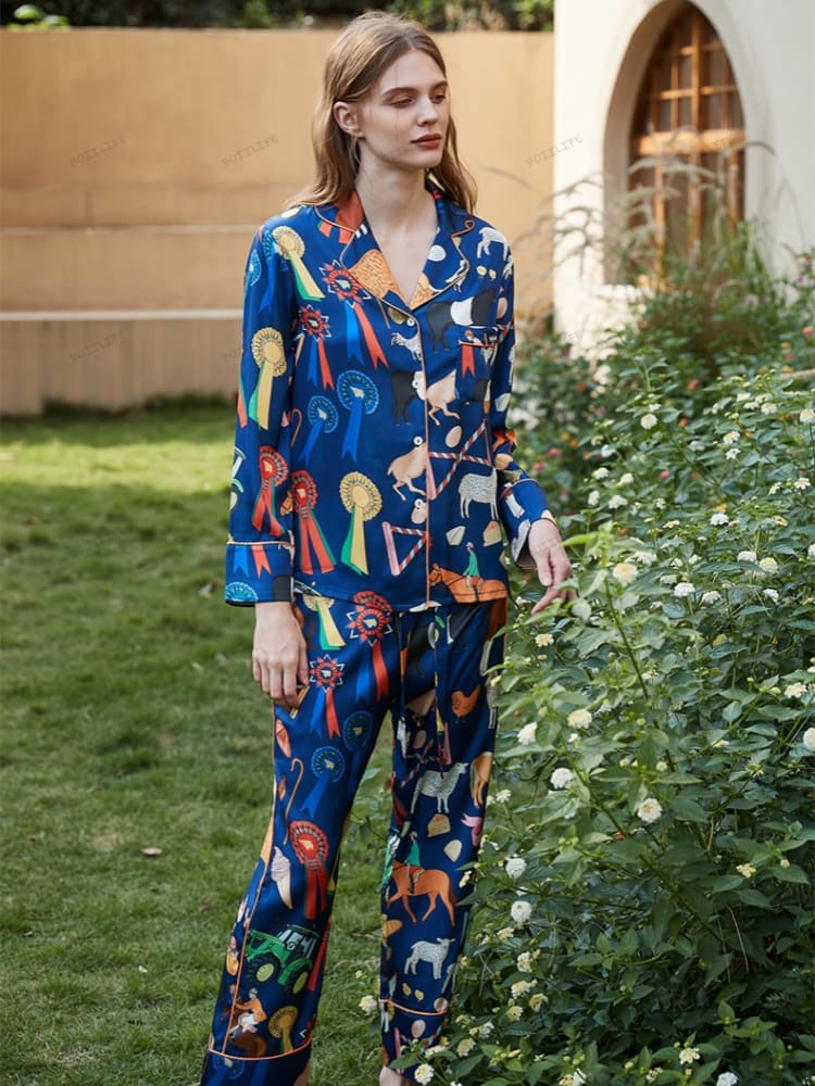 This Bird of Paradise Pattern Ice Silk Long Sleeve Pajama Set combines tropical beauty with luxurious comfort. Made from silky ice silk fabric, it is designed to provide a cool, breathable feel against your skin, offering a serene and stylish loungewear experience. The vibrant bird of paradise print brings an exotic touch, making it perfect for those who want both elegance and relaxation in their sleepwear.
