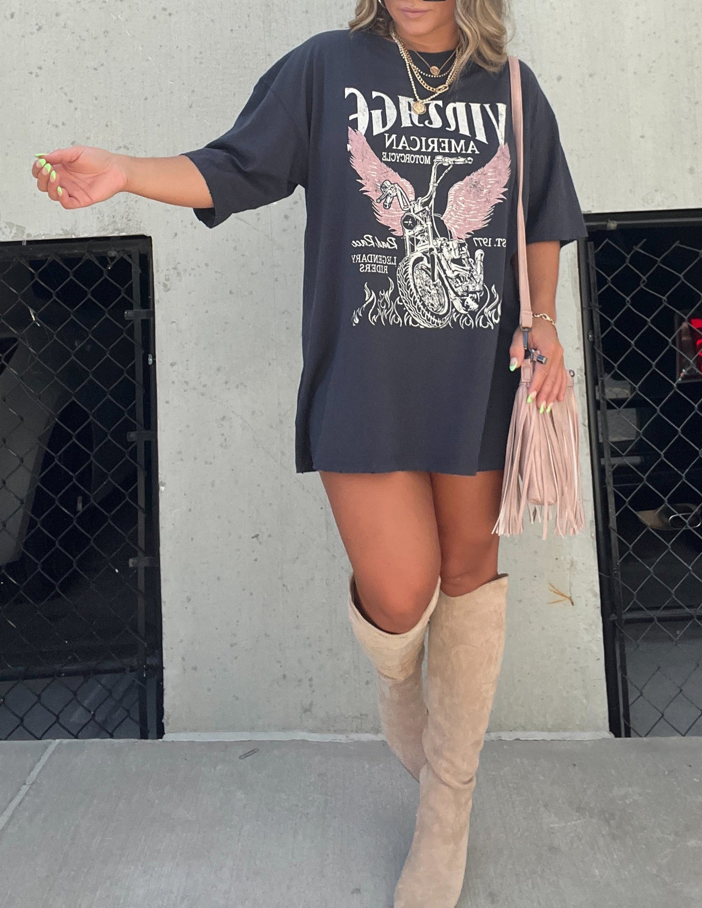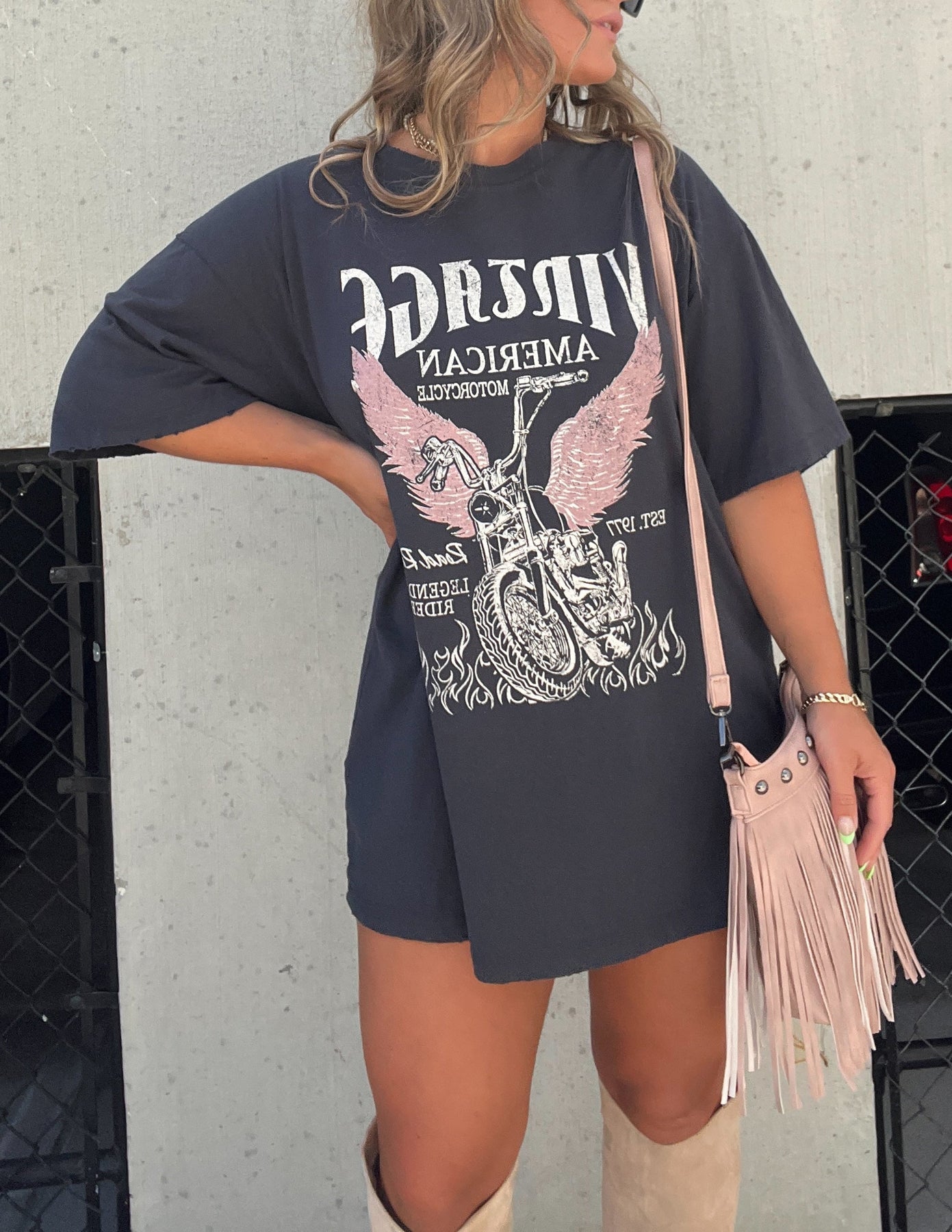 Whether you're a fan of vintage aesthetics or simply appreciate a unique and stylish tee, our Vintage Motors Tee in Charcoal is sure to become a favorite in your wardrobe. Embrace the retro-inspired fashion and showcase your individuality with this timeless piece.